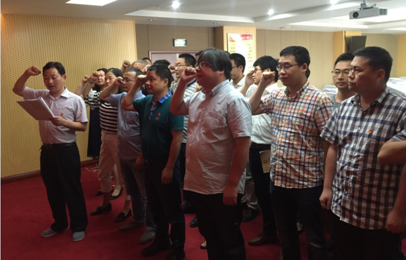 一、重溫誓詞不忘初心。全體黨員集中在黨員活動室,面對鮮紅的黨旗,進(jìn)行莊嚴(yán)宣誓,踐行先鋒模范。